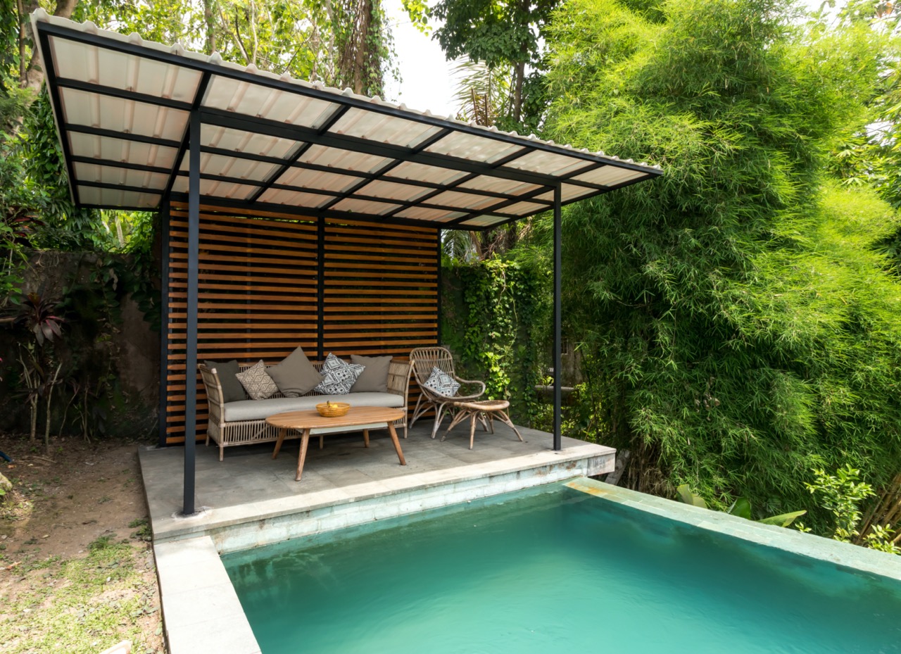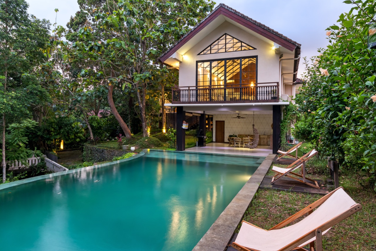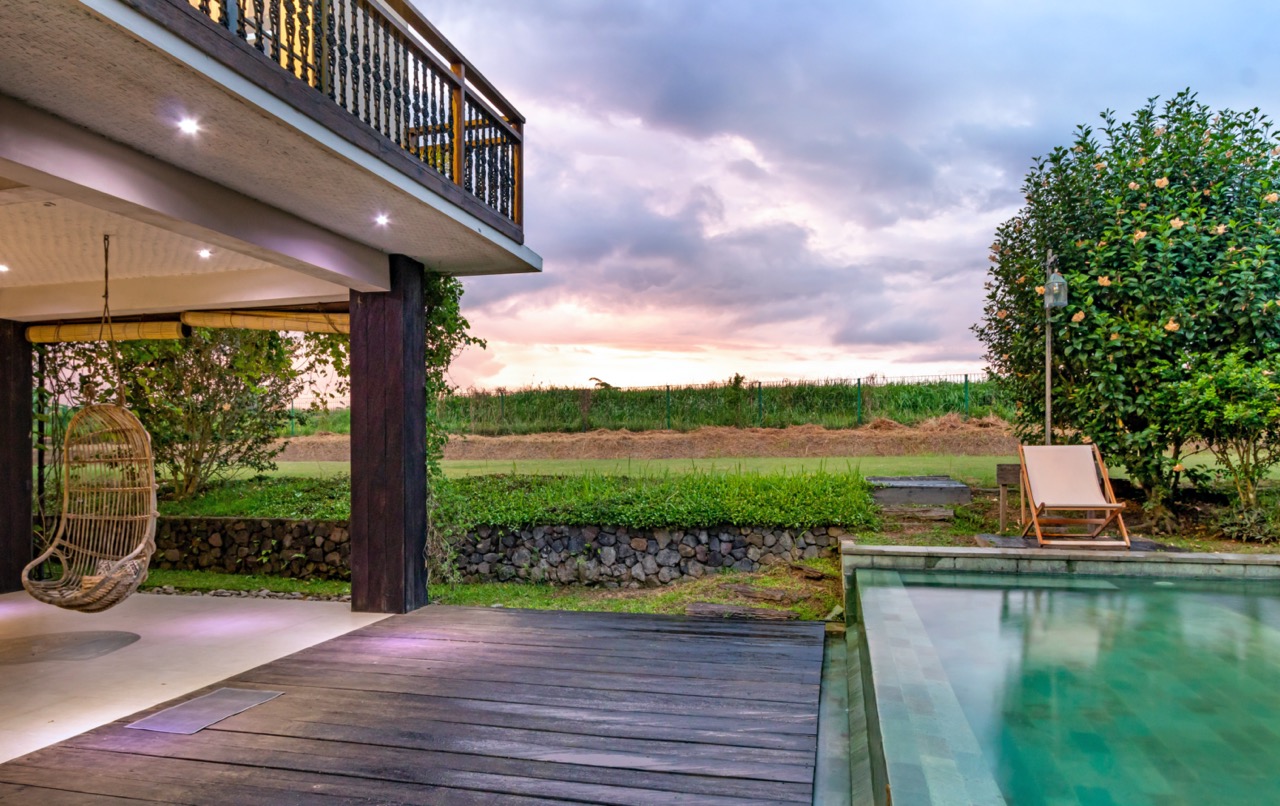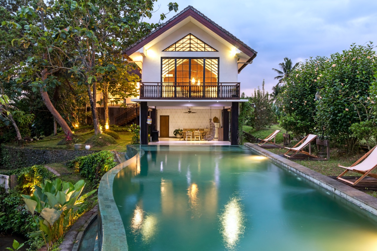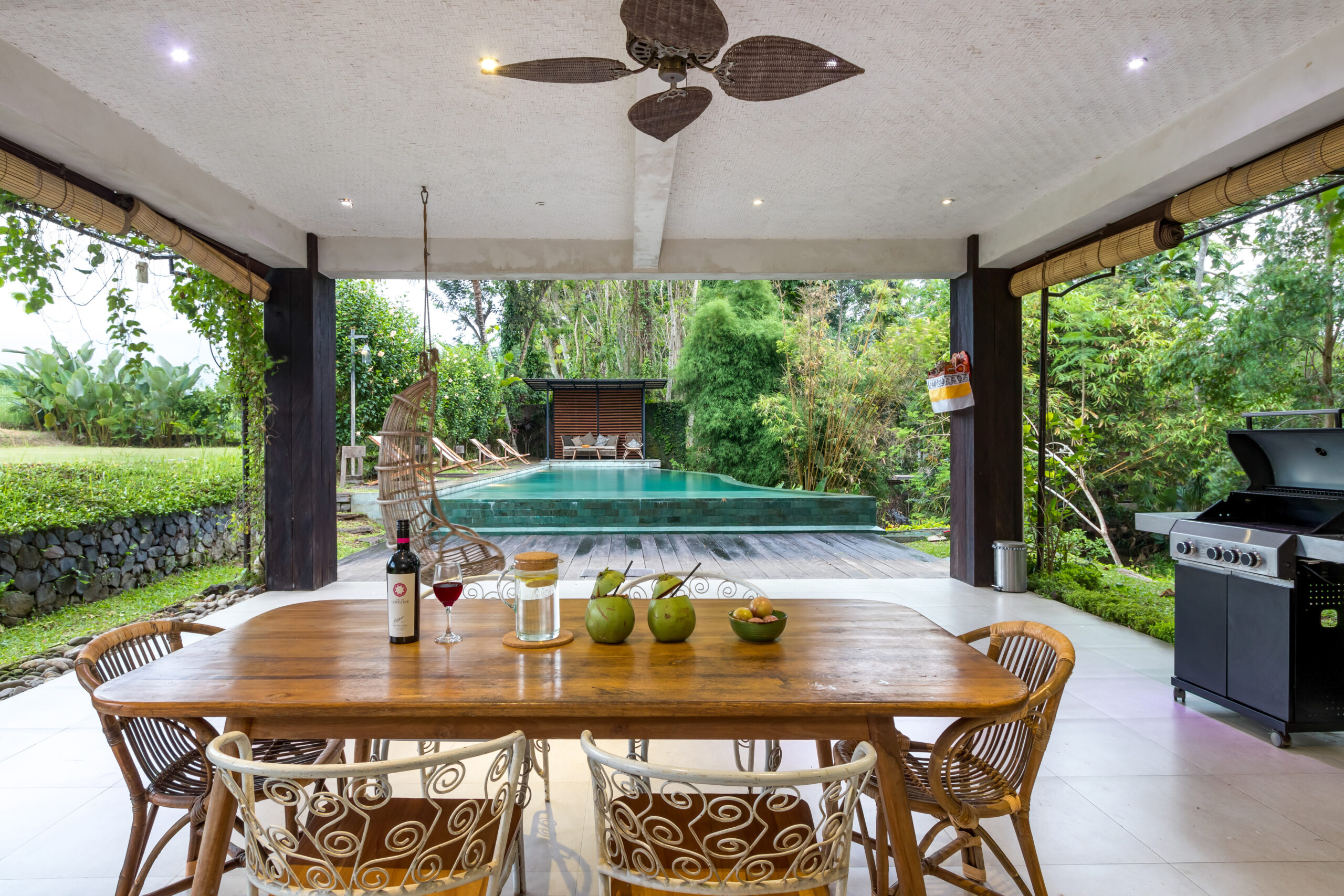 This brand-new villa is surrounded by a lawn, tall trees, and rice fields, providing an authentic Balinese experience in a top location. There is a rich forest nearby and the estate feels like an extension of this forest. You will also find a lawn where you can enjoy a picnic with the family. The garden is so big that it will take you a while to fully explore it.