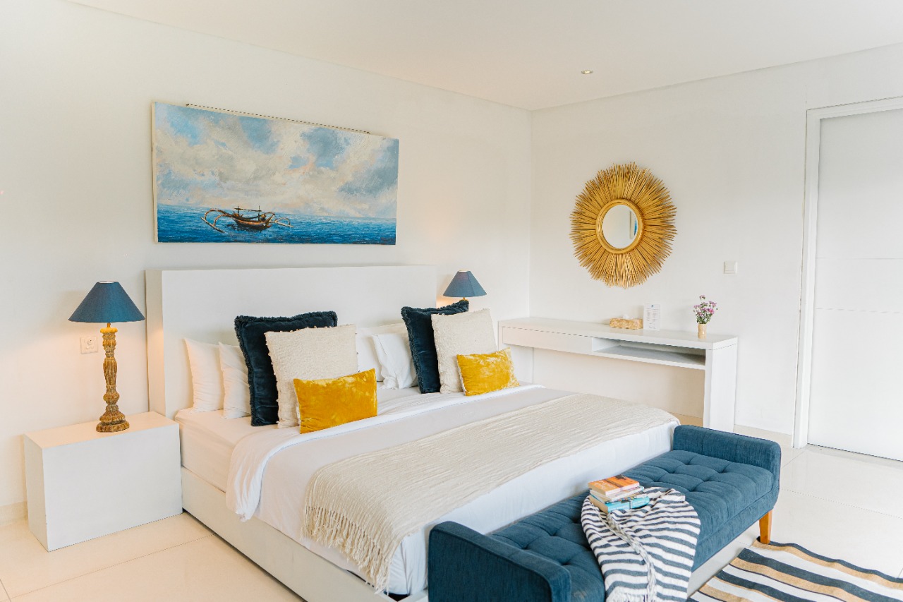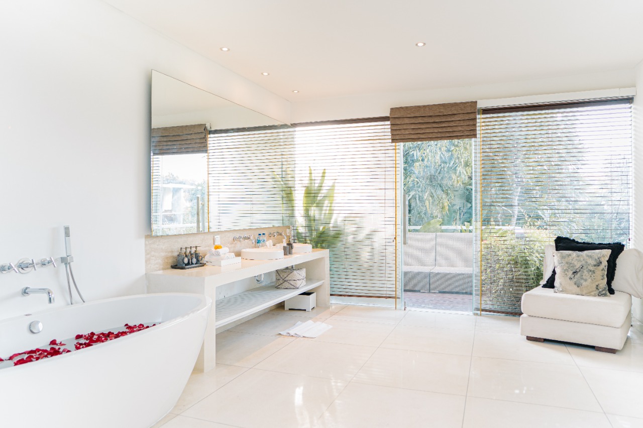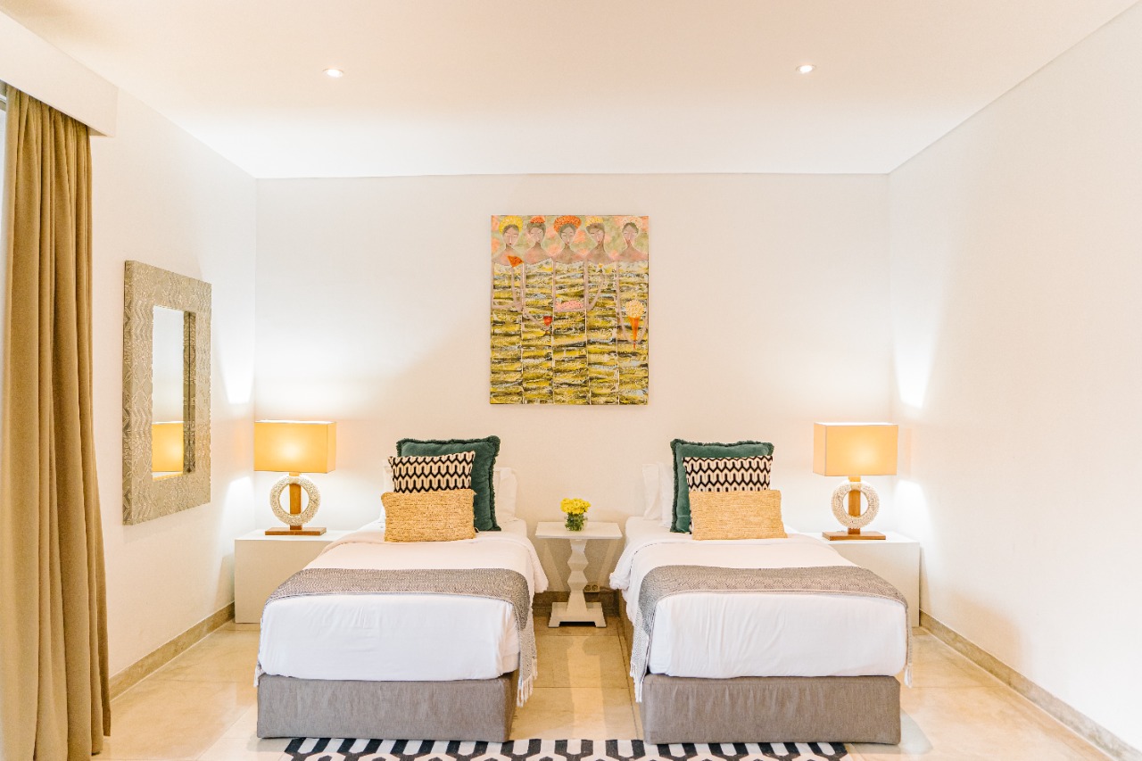 Four of the bedrooms are furnished with king-size beds while one has two single beds that can be converted to a king-size bed if required. Each bedroom is equipped with air-conditioning and a TV, and each opens to the furnished balcony or pool terrace.