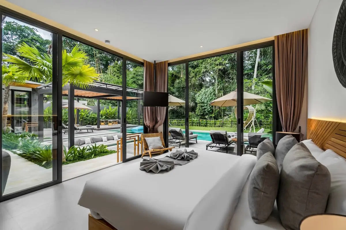 In this tranquil outdoor setting, you’ll find Villa Kamboja’s bedrooms 4 and 5, peaceful sanctuaries with French windows offering stunning pool views.