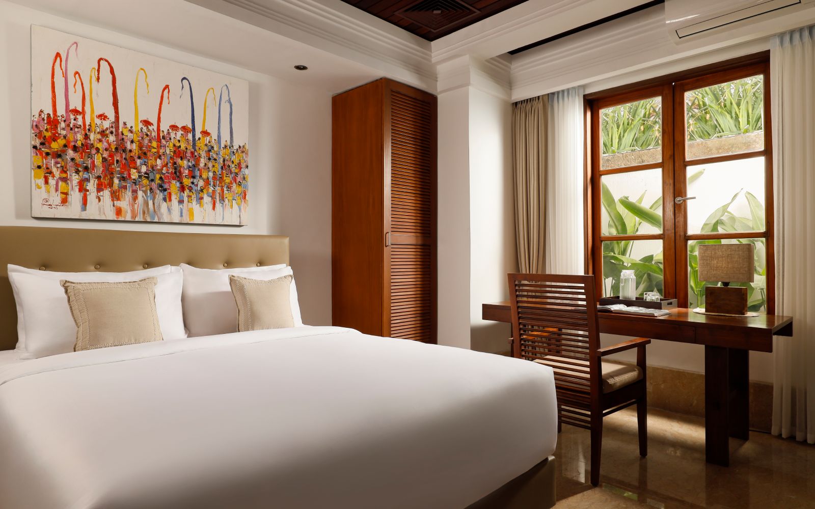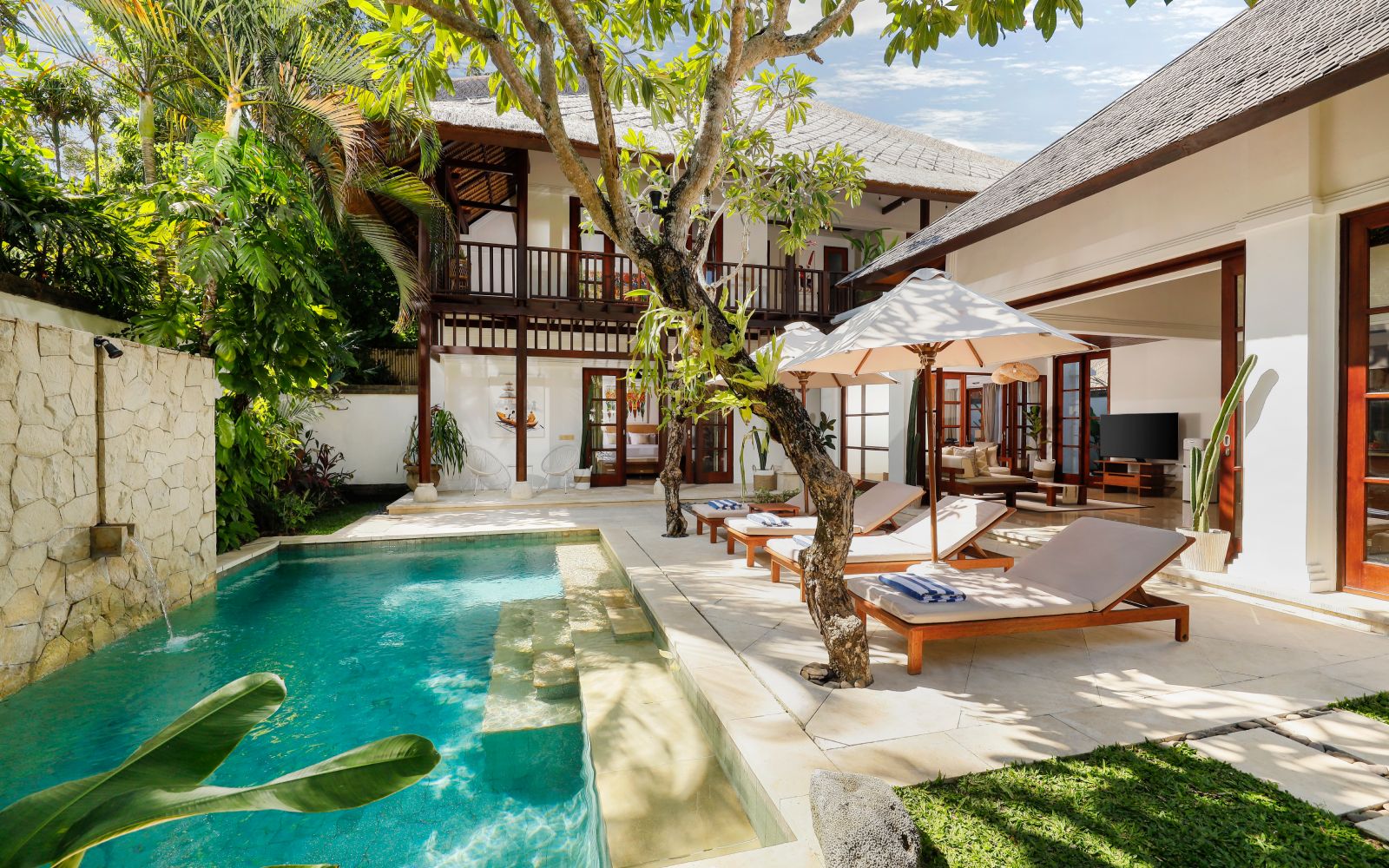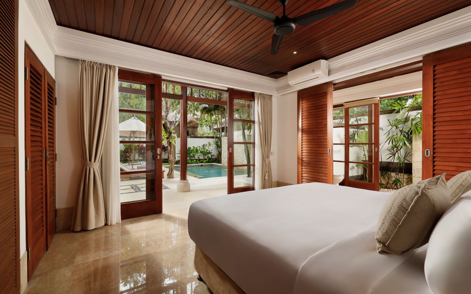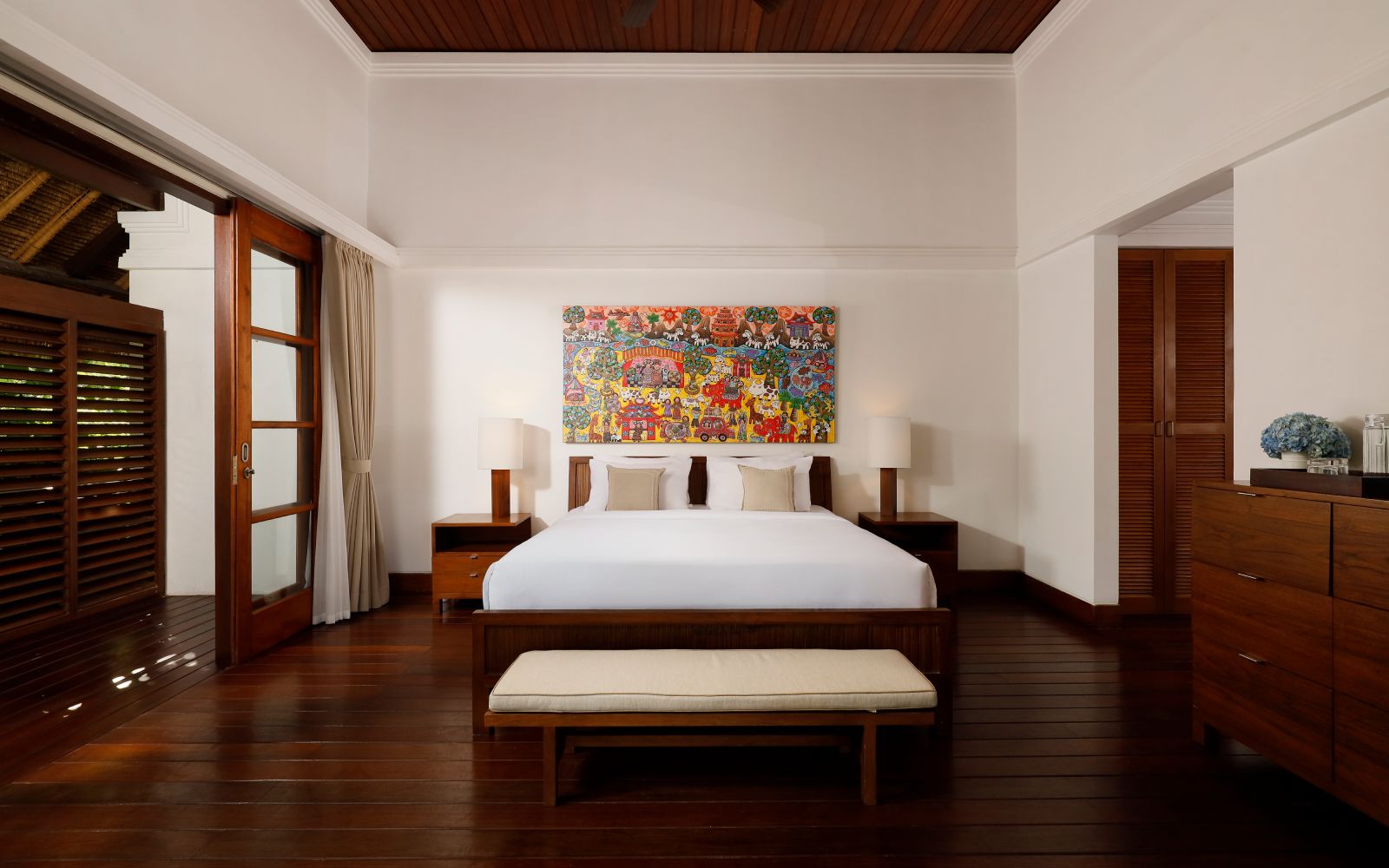 Villa Avaya captivates with its timeless beauty, blending traditional Balinese architecture seamlessly with bohemian chic. The wooden accents, and floor-to-ceiling glass sliding doors create an immersive indoor-outdoor experience. Step into a realm of tranquility within the villa’s beige and white-themed interiors, bathed in natural light, where every corner becomes a canvas of warmth and serenity.